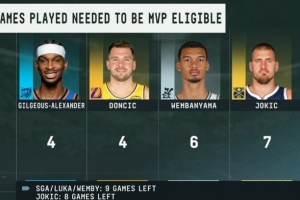 备注:亚历山大、东契奇、文班亚马所在球队常规赛还剩9场,约基奇还剩8场