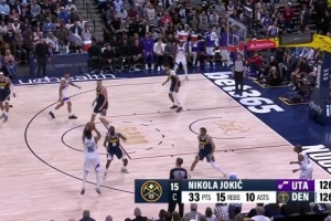 全场比赛下来,约基奇最终拿到33分15篮板12助攻1抢断的大号三双数据。